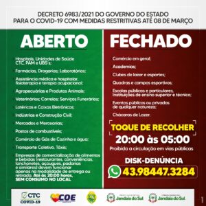 VEJAM O DECRETO 6.983/2021 NA ÍNTEGRA COM AS DETERMINAÇÕES DO GOVERNO DO ESTADO DO PR PARA CONTER O AVANÇO DA COVID-19