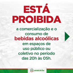 Está proibida a comercialização e o consumo de bebidas alcoólicas em espaços de uso público ou coletivo no período das 20h às 05h.