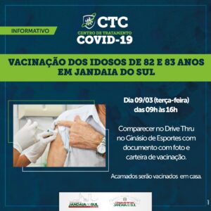 Todos devem comparecer no Drive Thru instalado no Ginásio de Esportes com documento com foto e carteira de vacinação. Não é necessário sair do carro para receber a vacina. Acamados serão vacinados em casa. Não é necessário cadastro prévio.