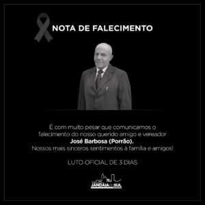 O Prefeito de Jandaia do Sul, Lauro Junior, decretou luto oficial de 3 dias pelo falecimento do vereador José Barbosa de 62 anos, conhecido como Porrão.