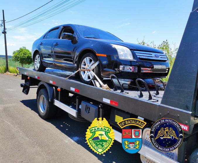 Um Ford Fusion preto foi apreendido nesta terça-feira (28), pela Polícia Militar (PM), na Vila Rica, em Jandaia do Sul. O carro está envolvido em uma colisão traseira contra uma viatura da polícia, que ocorreu no dia 27 de dezembro, que acabou deixando um dos policiais feridos.