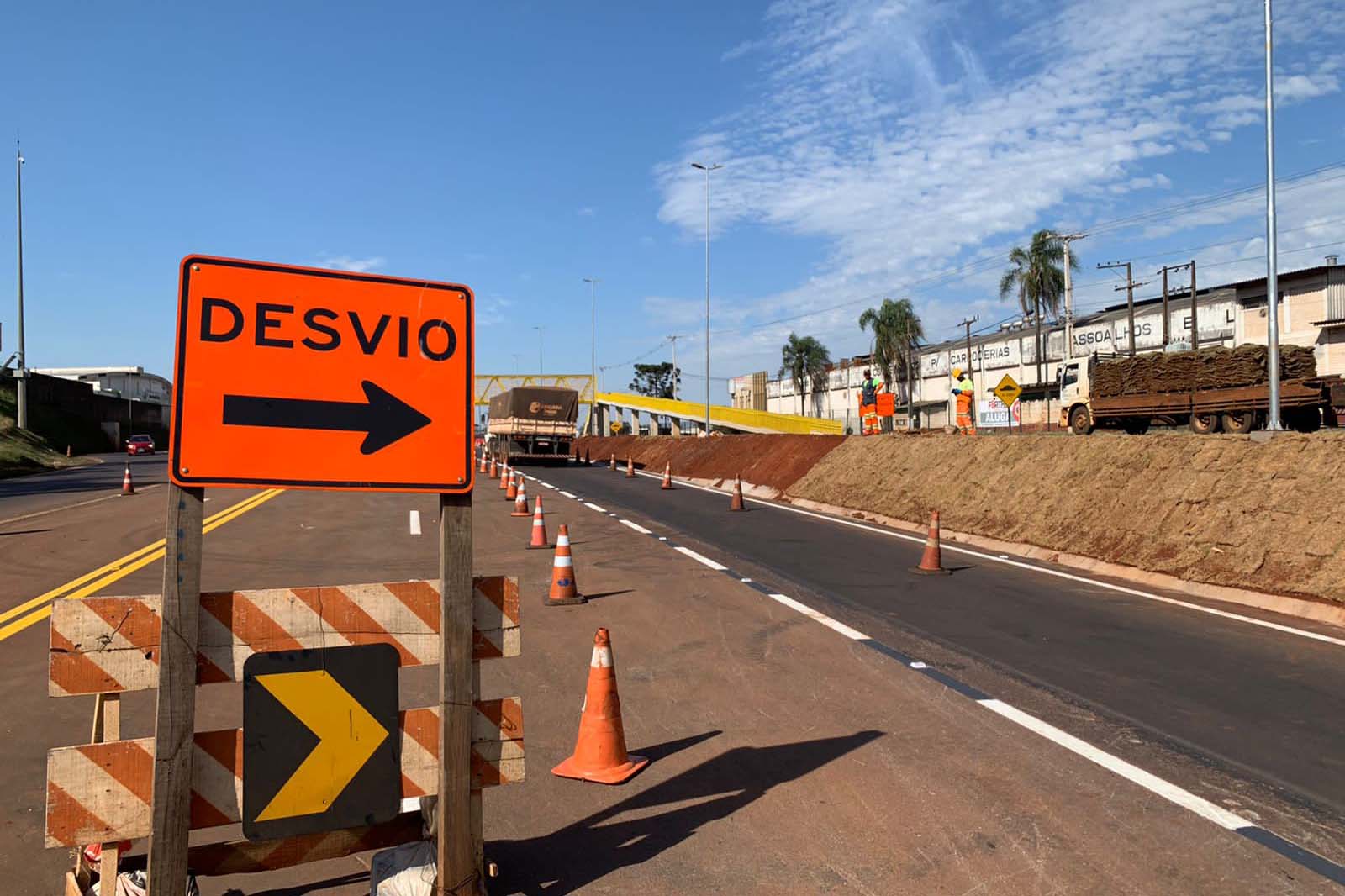 As obras de readequação do Trevo Cataratas, em Cascavel, na região Oeste, tiveram uma alteração na configuração dos desvios nesta quinta-feira (14). O acesso à marginal da BR-277, de quem trafega sentido Foz do Iguaçu para Curitiba, foi modificado. Ele foi implantado 150 metros mais à frente do acesso que vinha sendo utilizado.