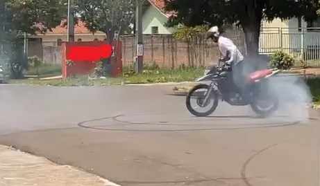 O vídeo com a denúncia chegou à Polícia Militar ainda na semana passada, na quinta-feira (10). No vídeo, é possível identificar a placa da motocicleta Honda modelo XRE 300, que faz uma série de “zerinhos” e “slides”, com o piloto se exibindo das habilidades. O vídeo é gravado por alguém que está no estabelecimento.
