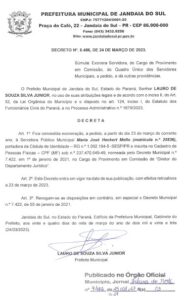 EM 14 DE MARÇO O PREFEITO DE JANDAIA DO SUL, SUSPEITO DE ILÍCITOS, E QUATRO SERVIDORES MUNICIPAIS, FORAM AFASTADOS POR 90 DIAS LIMINARMENTE DOS CARGOS EM AÇÃO MOVIDA PELO MINISTÉRIO PÚBLICO DO PARANÁ (MPPR).