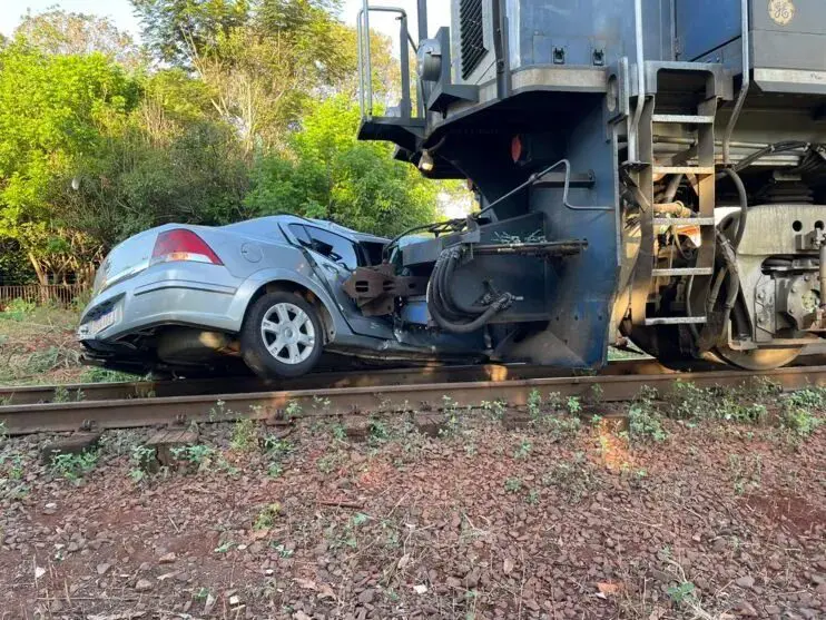 Um carro foi arrastado por aproximadamente 10 metros após ter sido atingido por um trem na manhã desta quinta-feira, 13, no Jardim Esplanada, em Mandaguari. O acidente envolvendo automóvel e locomotiva causou grande tumulto na região.