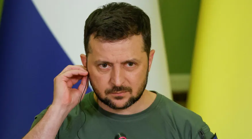 O presidente da Ucrânia, Volodymyr Zelensky, participa de um debate neste domingo (21), último dia da cúpula do G7, em Hiroshima, no Japão, sobre a situação do seu país, em guerra com a Rússia desde que teve seu território invadido em fevereiro 2022.