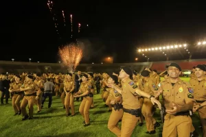 Mais 319 novos soldados passam a reforçar a segurança das regiões Oeste e Sudoeste do Paraná, após a formatura do Curso de Formação da Polícia Militar do Paraná, nesta sexta-feira (15), no Estádio Olímpico Regional Jacy Miguel Scanagatta, em Cascavel. O evento contou com a presença do governador Carlos Massa Ratinho Junior e completa o ciclo de formaturas de 2.485 novos policiais em todo o Estado.