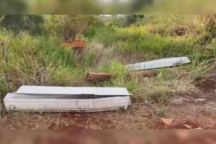 Caixões supostamente já usados foram descartados de forma irregular em um terreno baldio localizado no bairro Jardim Moretti, em Jandaia do Sul, no norte do Paraná. Um vídeo, que está circulando nas redes sociais e chama atenção da população, mostra uma VW Saveiro transportando os caixões que pertencem a uma funerária da cidade.
