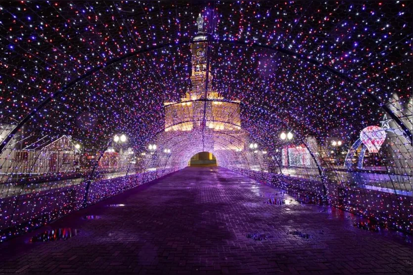 As luzes da decoração natalina atraem a atenção das famílias de Apucarana e da região por conta de sua beleza