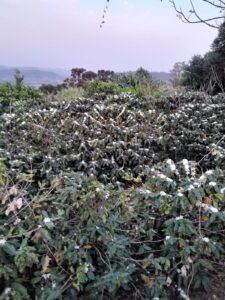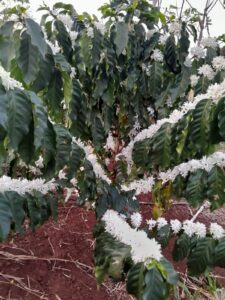 A floração é um sinal de que a planta está se preparando para produzir frutos. Após a florada, as flores brancas e perfumadas, conhecidas como “flores do café”, caem, e começam a se formar os frutos, que amadurecem ao longo dos meses seguintes até estarem prontos para a colheita.