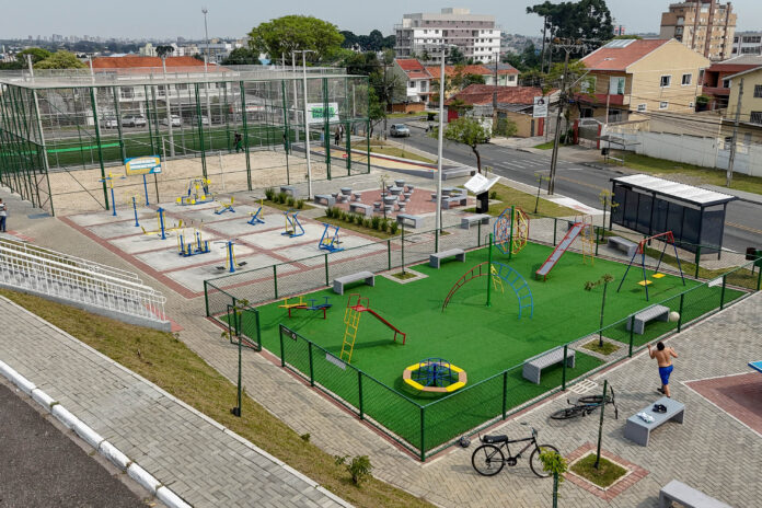 A engenheira Civil Camila Martinez, supervisora do Serviço Social Autônomo Paranacidade, explicou a execução do projeto. “Esse projeto de Pinhais é um módulo campo-grama, com aproximadamente 870metros quadrados composto por campo de futebol com grama sintética, com traves, redes e cercado por alambrado e tela. Ao redor do campo foi feito calçamento e iluminação. Está localizado junto a uma praça que também possui equipamentos para lazer e atividade física”, disse a engenheira.