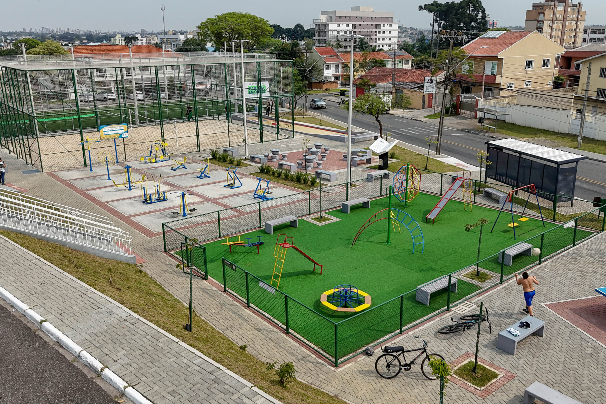 O empreendimento localizado na Rua Quinze De Novembro, no Centro da cidade, abrange calçada, iluminação e campo de grama sintética drenado, cercado por alambrado metálico e telas de polipropileno. O acesso é liberado à população de forma gratuita.