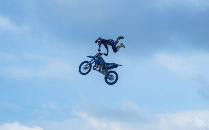 O Verão Moto Show, realizado sábado (4) na Arena Verão Maior, em Caiobá, marcou a estreia de 2025 no calendário esportivo do Verão Maior Paraná. O evento, parte dos Jogos de Aventura e Natureza (JANs), contou com apresentações de tirar o fôlego dos pilotos Joaninha, hexacampeão da Copa Brasil de Motocross Freestyle, e Robert Fire, que juntos formam a equipe J99 Freestyle Show.