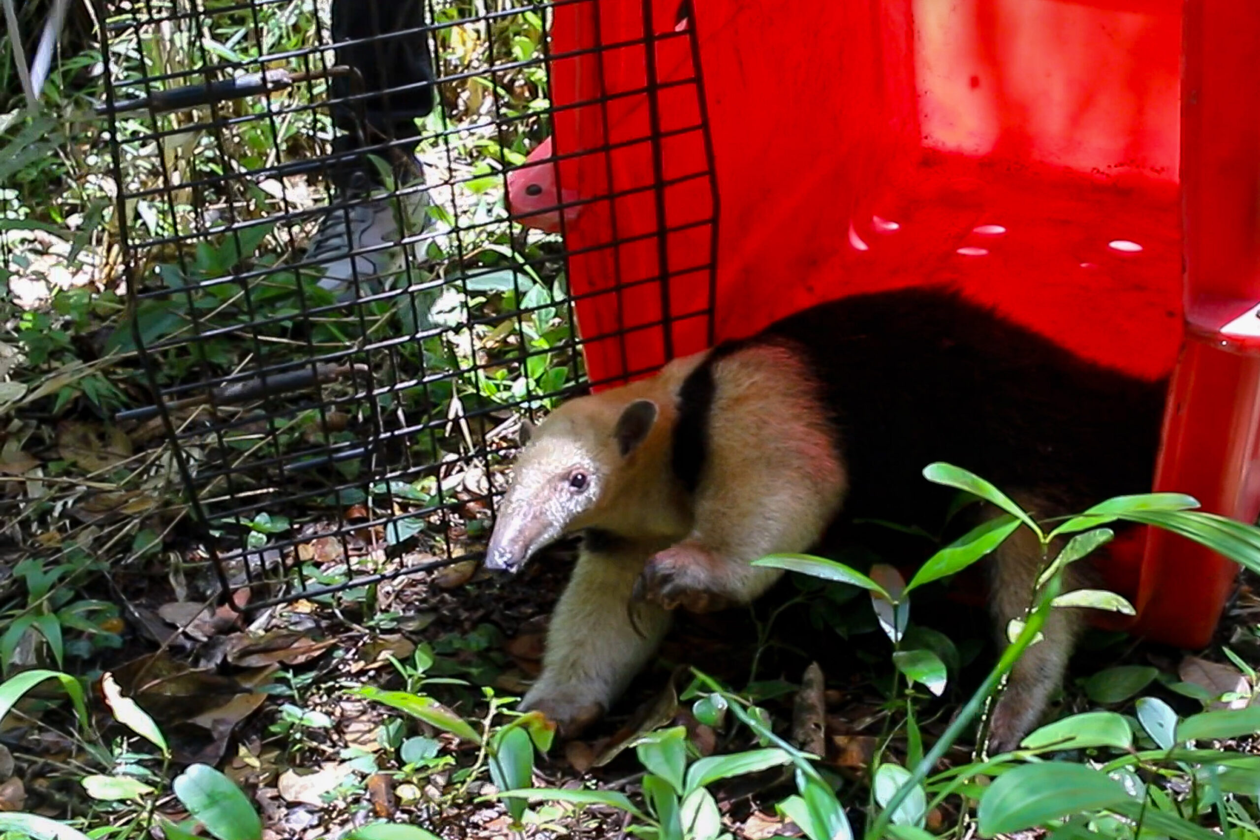 Um tamanduá-mirim (Tamandua tetradactyla) resgatado em uma residência na tarde de sexta-feira (24) foi devolvido ao seu habitat natural neste sábado (25), nas proximidades do Parque Estadual do Rio da Onça, localizado na divisa entre os municípios litorâneos de Matinhos e Pontal do Paraná. A fêmea adulta, de 4,5 quilos, estava saudável e, após ser microchipada, pôde ser devolvida para a natureza. Foi a primeira “devolução” de um animal da espécie ao seu habitat neste ano.