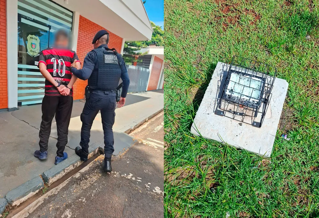 A Guarda Civil Municipal (GCM) de Apucarana (PR) prendeu um homem na manhã deste sábado (08), após ele ser flagrado quebrando luminárias na rotatória em frente ao Supermercado Amigão, na Avenida Curitiba, área central da cidade.