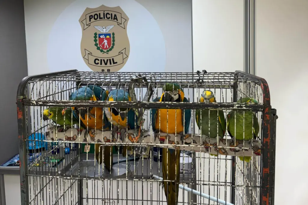 Seis aves vítimas do tráfico de animais foram resgatadas nesta sexta-feira (21), no bairro Uberaba, em Curitiba. Segundo a Polícia Civil do Paraná (PCPR), três araras-canindé e três papagaios estavam mantidos em cativeiro. As investigações indicam que os animais eram comercializados ilegalmente pela internet, sem as devidas autorizações e sem os documentos exigidos pelos órgãos ambientais, configurando o crime de tráfico de animais.
