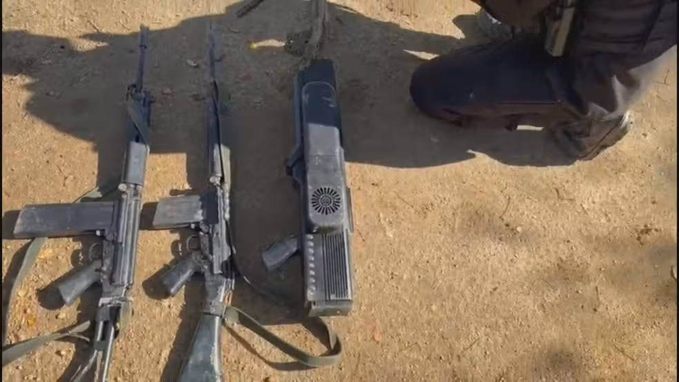 Na ação, cinco suspeitos foram detidos e um fuzil, um carregador, uma granada, cinco rádios transmissores e uma granada foram apreendidas na região conhecida como Fim do Mundo.