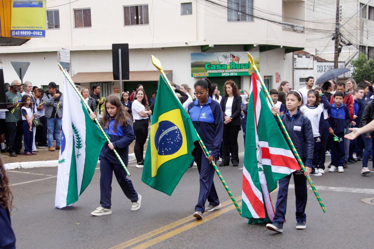 O desfile contou com a presença do prefeito Ditão Pupio, da primeira-dama Gorete Pupio, do vice-prefeito Inei Heckert, da presidente da Câmara Municipal, Adriana Jaime, além de vereadores, diretores de departamentos, representantes das forças de segurança e lideranças comunitárias.