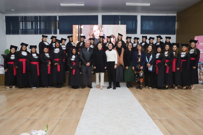 A formatura da turma de Rio Branco do Sul, na Região Metropolitana de Curitiba, nesta terça-feira (7), marcou o encerramento da edição 2025 do programa Empreendedoras da Beleza, uma iniciativa que vem abrindo portas e oportunidades para mulheres paranaenses ingressarem no mercado da beleza com qualificação e autonomia. Nesta última turma, 27 mulheres receberam o diploma que as habilita a atuar como maquiadoras profissionais. As novas formandas se somam às outras 199 mulheres que receberam o certificado em 2025.