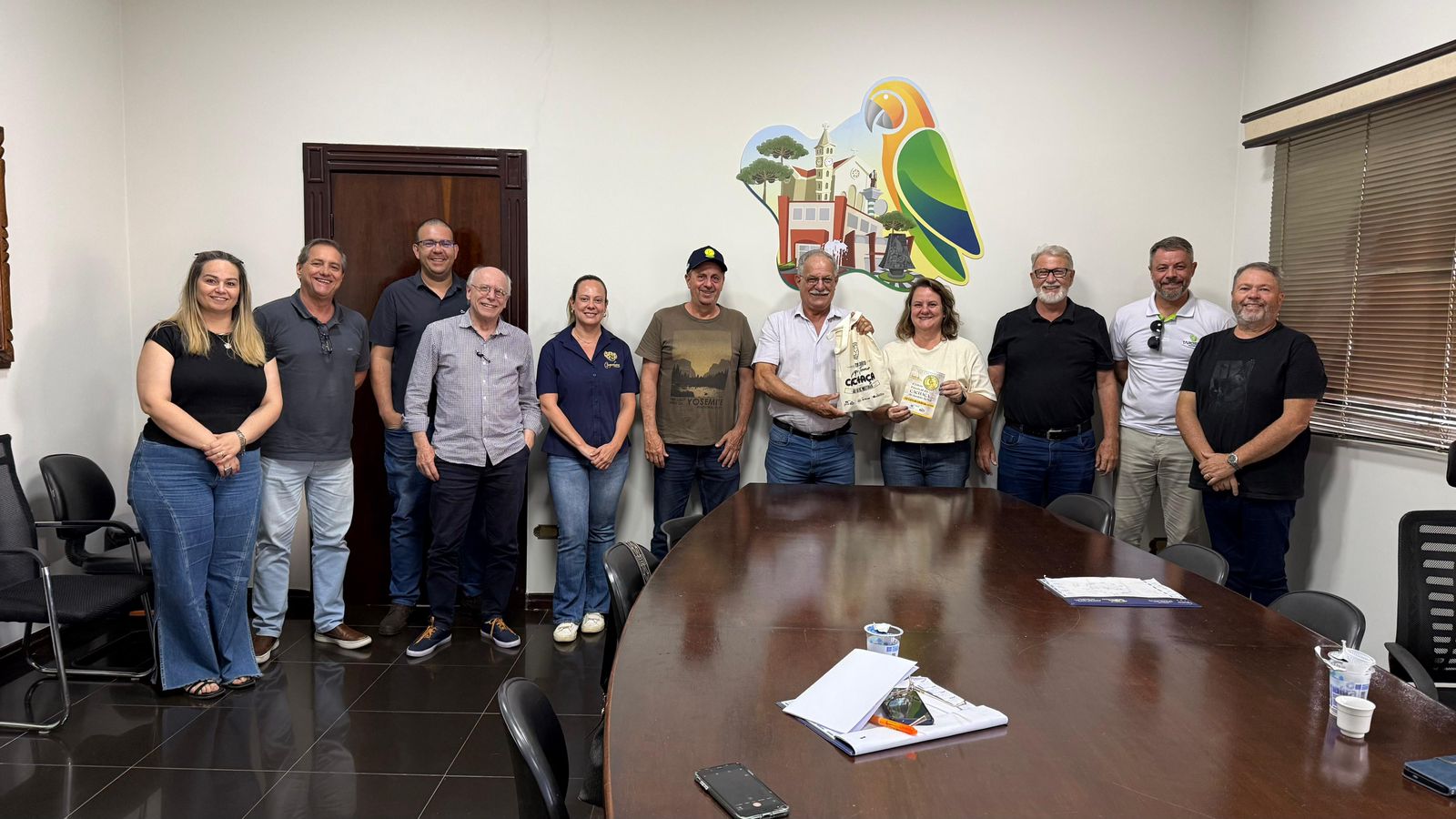 Na tarde de sexta-feira, 28 de novembro, a Prefeitura de Jandaia do Sul realizou, no gabinete do prefeito, uma reunião de alinhamento para avançar na organização do Festival da Cachaça 2026. Participaram do encontro o prefeito Ditão Pupio, o vice-prefeito Inei Heckert, a comissão organizadora do festival e equipes de departamentos municipais envolvidas na preparação do evento.