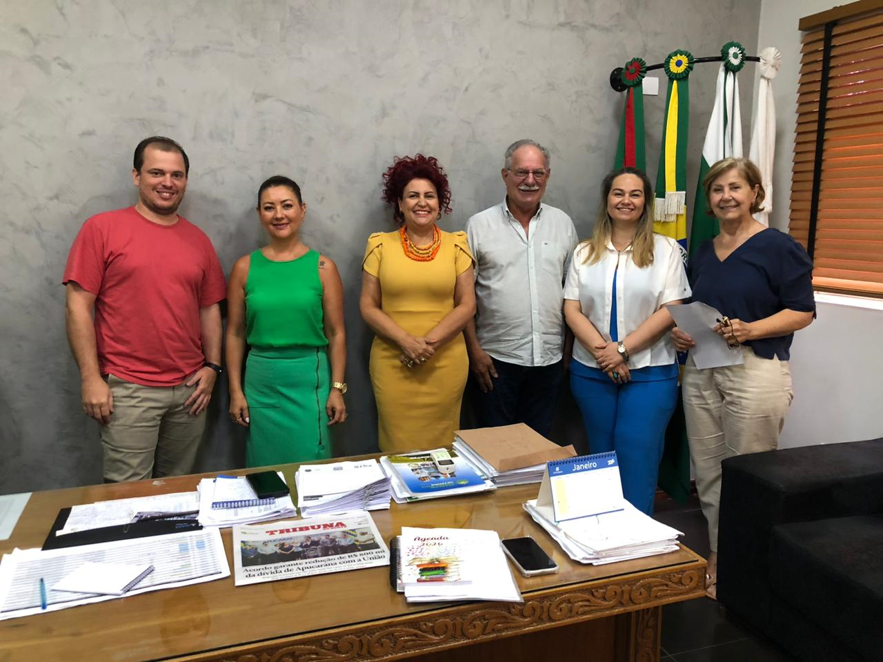 Também participaram da reunião a chefe de gabinete Danielle Tamarozi, Maria José Heckert, do Departamento Jurídico, Rodrigo, contador do município, e Cláudia Hashimoto, Diretora de Educação.